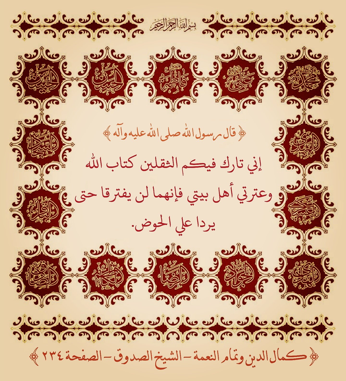 أحاديث أهل البيت ع Sur Twitter قال رسول الله صلى الله عليه وآله إني تارك فيكم الثقلين كتاب الله وعترتي أهل بيتي فإنهما لن يفترقا حتى يردا علي الحوض 4shiart Https T Co 9d2p2p8hvw