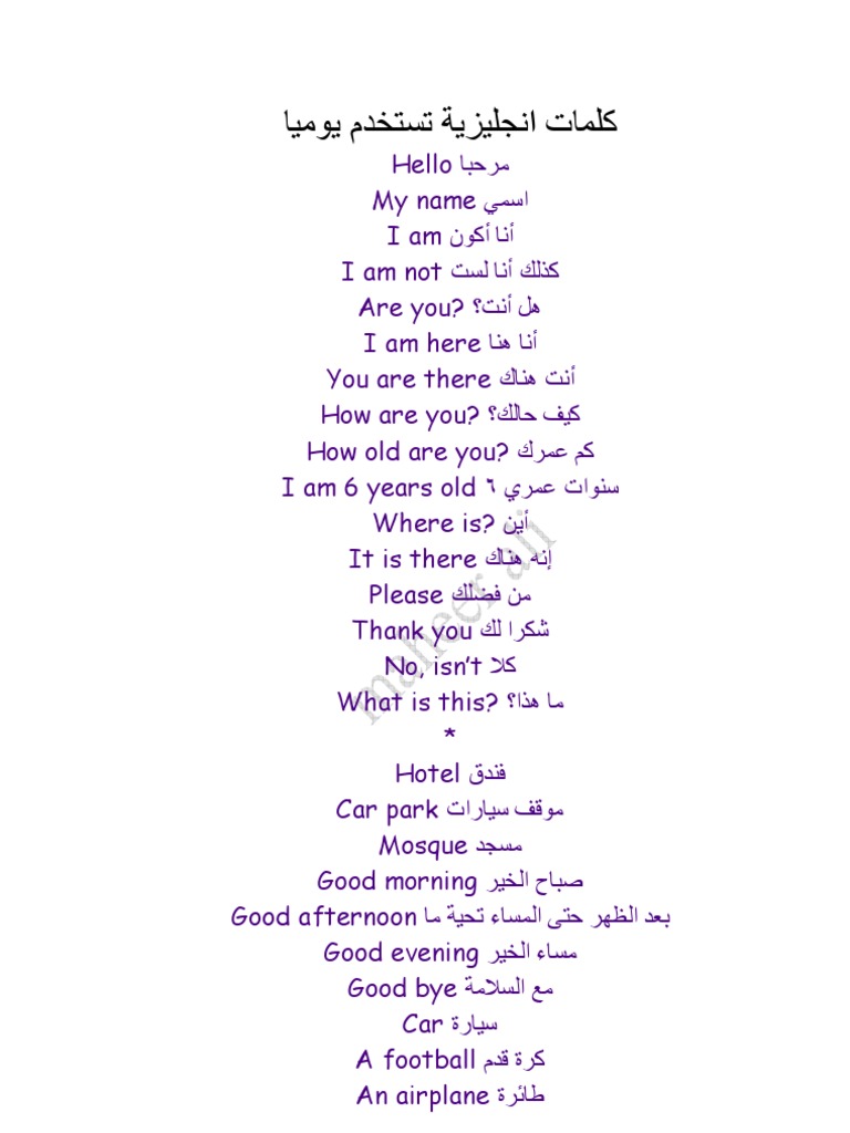 كلمات انجليزية مترجمة للعربية مصطلحات مفيدة Pdf هات