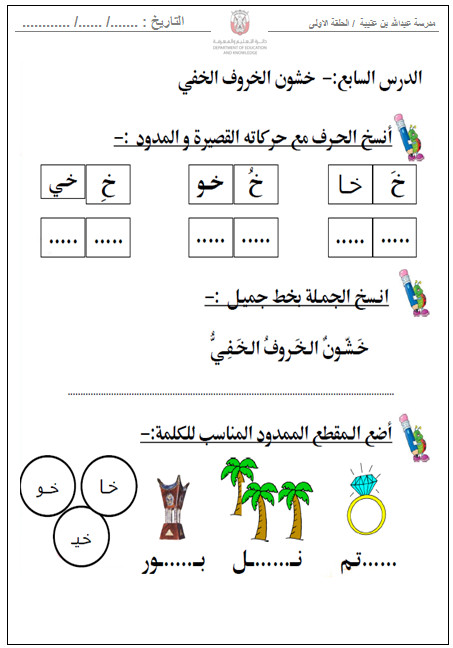 مدونة تعلم أوراق عمل حرف الخاء للصف الاول الفصل الدراسي الاول