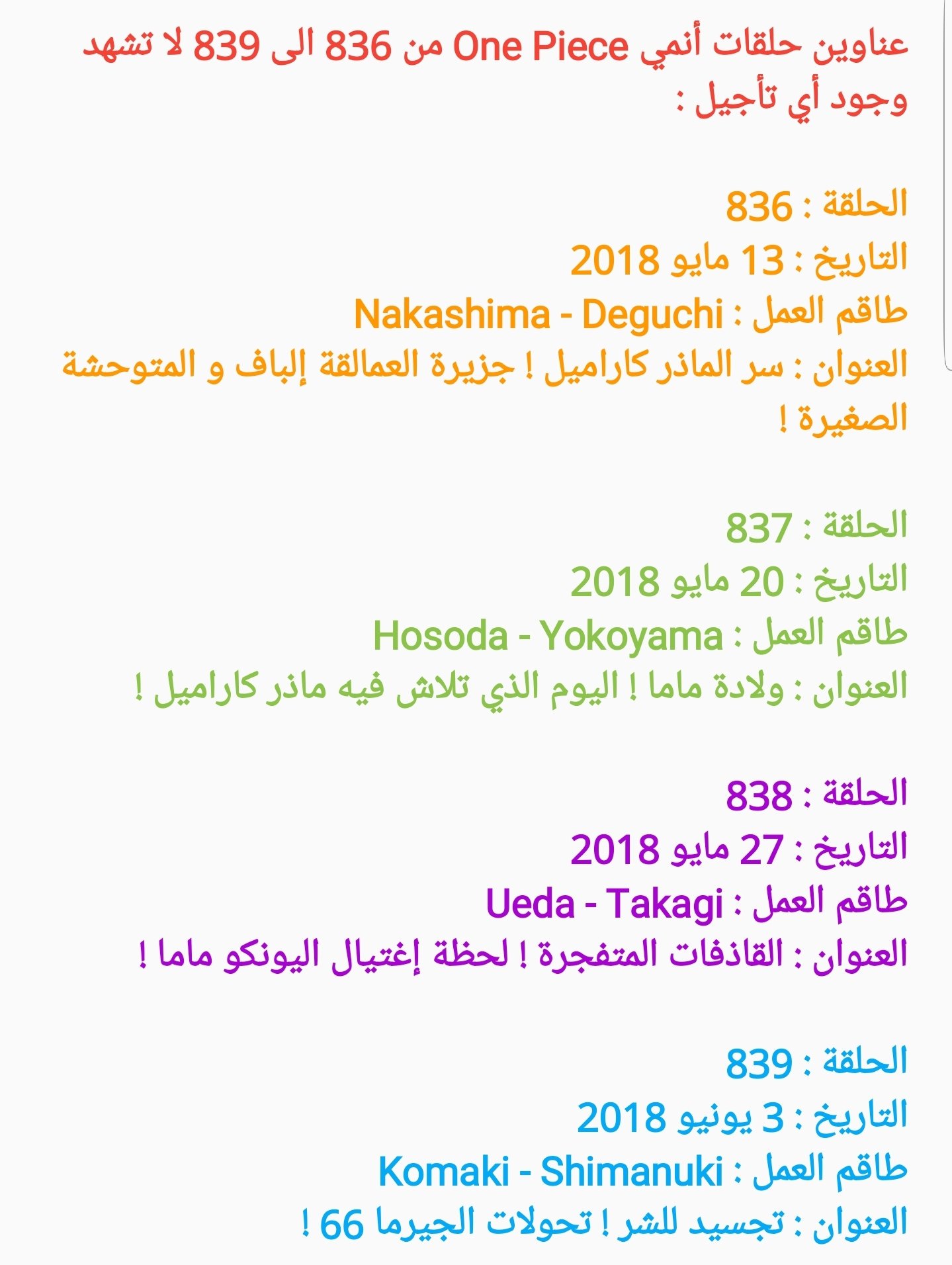 Emunopla V Twitter عناوين حلقات أنمي One Piece من 836 إلى 839