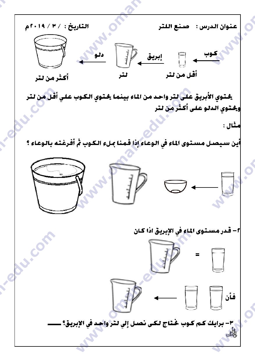 ورقة عمل صنع اللتر للصف الثاني الفصل الثاني